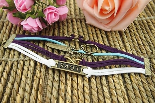 Vintage Scissors, Love, Arrow Rope Bracelet