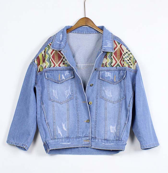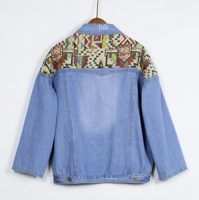 Tribal Pattern Denim Jacket