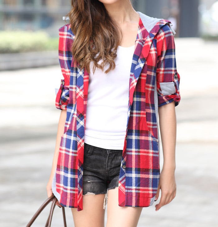 Material: Cotton Blends Clothing Length: Long Sleeve Length: Full Collar: Hooded Pattern Type: Plaid Style: Fashion Weight: 0.7KG Package Contents: 1 x Blouse