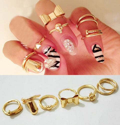 7PCS Set of Rings includes skull, bowknot, heart, and others
